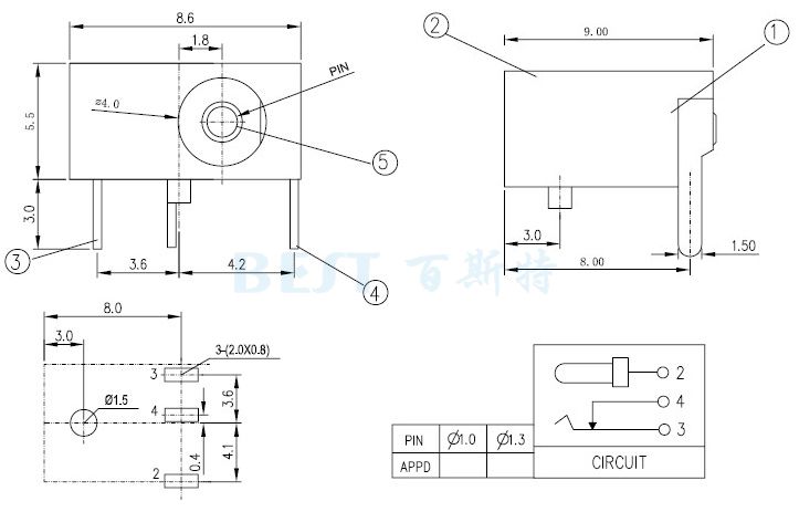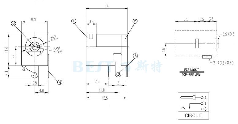 dc電源插座005_DC-005B_技術(shù)參數(shù):