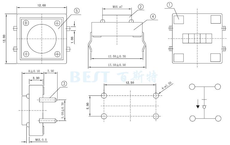 輕觸開(kāi)關(guān)TS-1103W為12×12mm貼片型輕觸開(kāi)關(guān),高度有4.3mm-12mm高。但是支持耐高溫的只有4.3mm和5mm兩個(gè)高度,顏色也只有白色頭。力度:160g/250gf;包裝方式:袋裝(1000pcs包)。輕觸開(kāi)關(guān)TS-1103W常用于家用電器、儀器儀表、汽車(chē)電子、安防產(chǎn)品等行業(yè)。