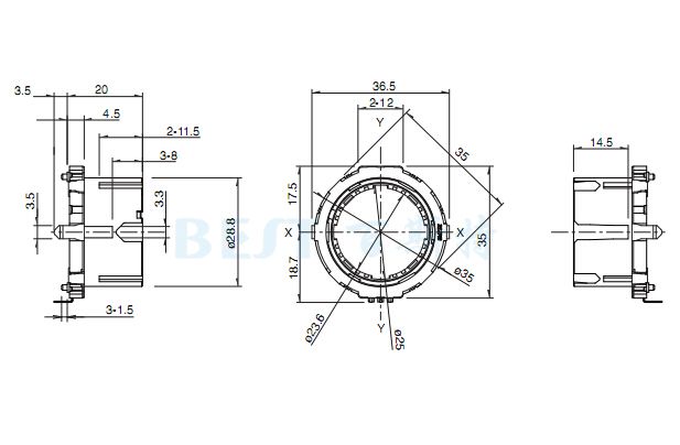 EC35A編碼器也可稱為環(huán)形編碼器、中空編碼器、阿爾卑斯編碼器等,有金屬軸/絕緣軸/貫通軸/中空軸等類(lèi)別之分。旋轉(zhuǎn)柄的直徑為28.8mm,高度 20mm,因其本體厚度4.5mm的薄型化和良好的操作感覺(jué),現(xiàn)大量使用于汽車(chē)音響的音量調(diào)節(jié)、空調(diào)溫度調(diào)節(jié)、洗衣機(jī)功能選擇、電磁爐、微波爐、烤箱溫度 調(diào)節(jié)等產(chǎn)品上面。